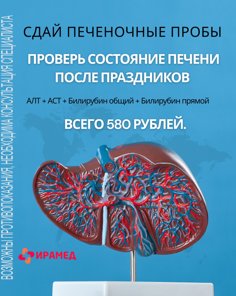 ✔️ АКЦИЯ: Печеночные пробы после праздников. Проверь состояние печени всего за 580 рублей
